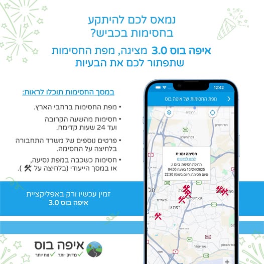 חסימות כשכבה במפת נסיעה, או במסך הייעודי.